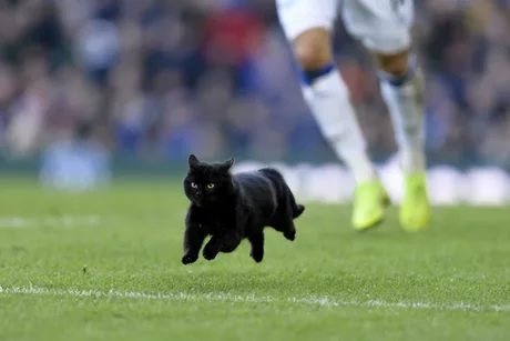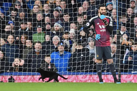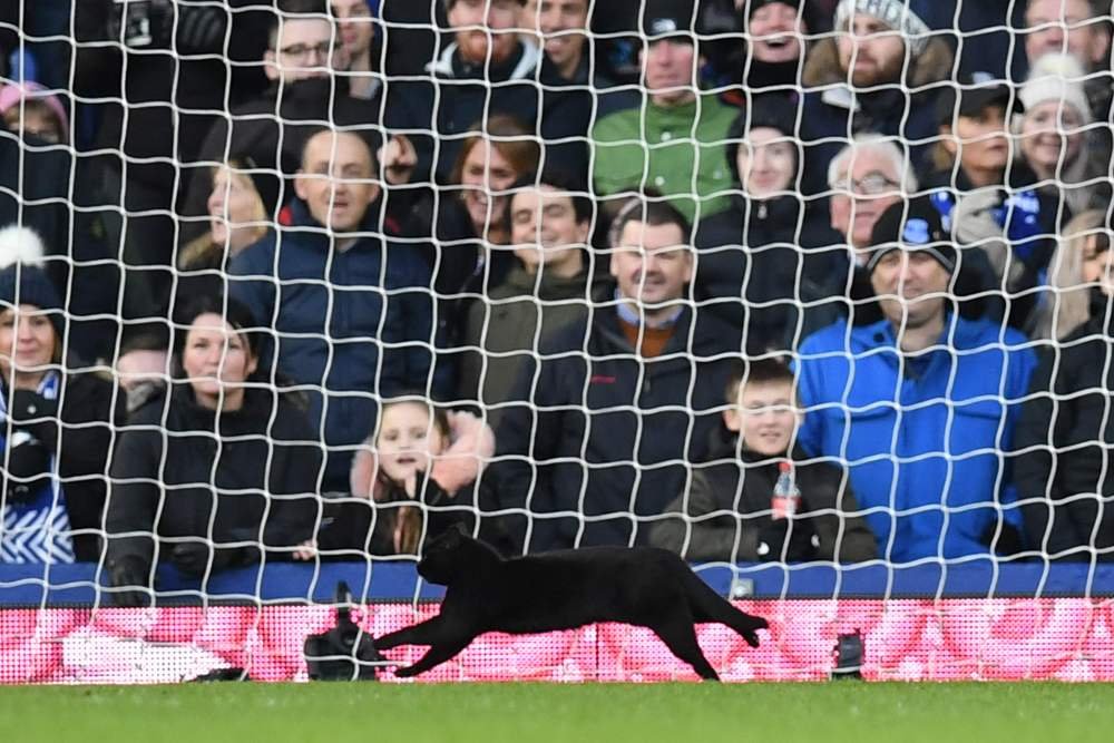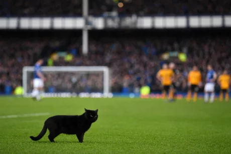 A premier league match between Everton and Wolverhampton Wanderers went into a brief recess after a majestic black cat took over the field just about the 67th minute. While the fans were mad with adrenaline the cat was busy being part of the game even as officials remained perplexed as to how the feline found its way into the stadium or onto the field for that matter.