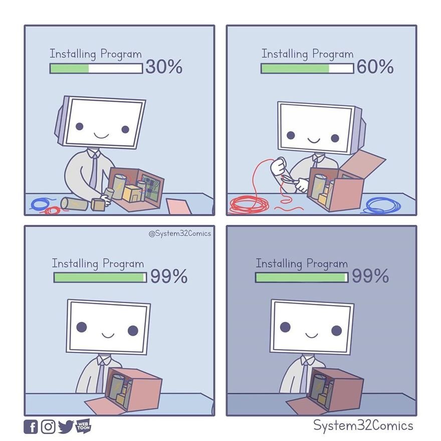 System32Comics is popular for their comics poking at the weaknesses and hilarious things technology does to us. Green Lemon has compiled the funniest ones and we hope you enjoy them while waiting for that update on your laptop to finish!