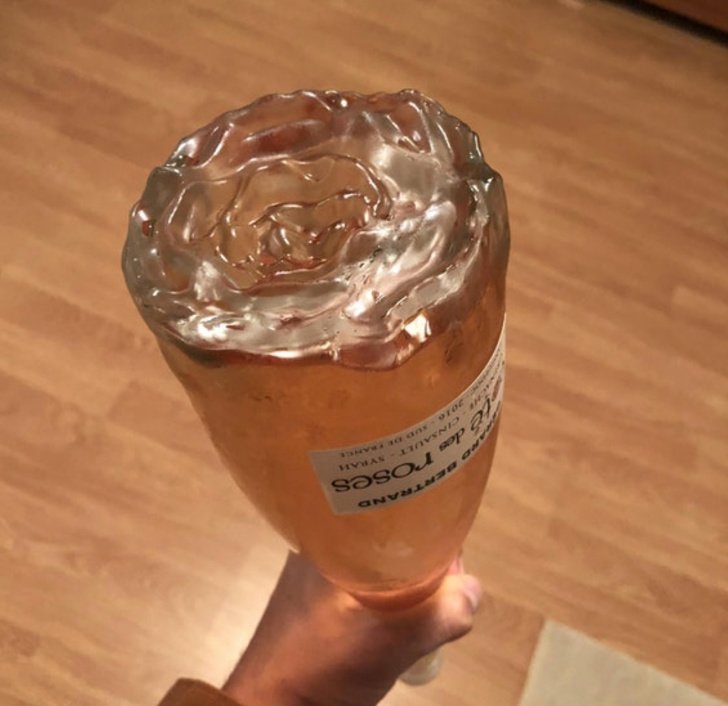 The bottom of this bottle of rosé is shaped like a rose.