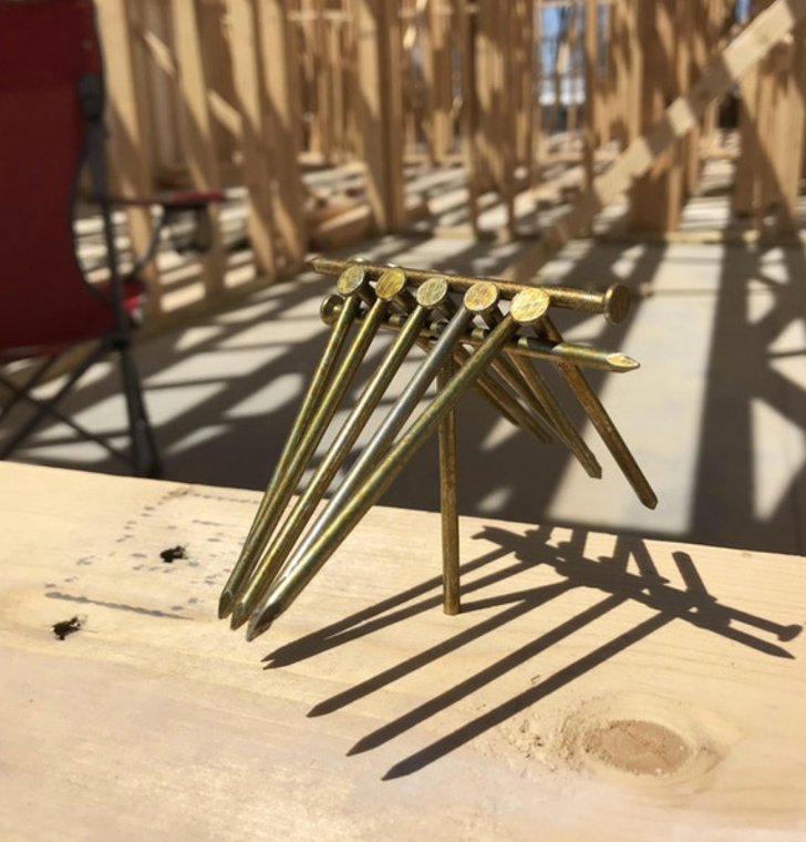 12 nails balancing on top of 1