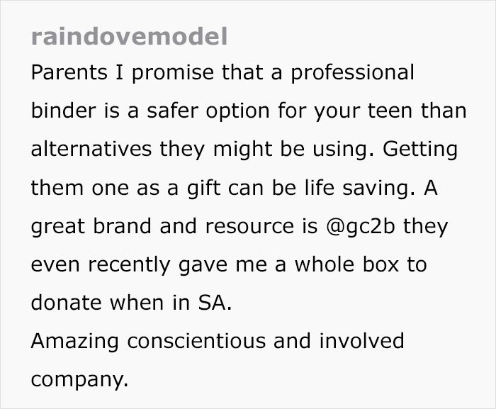 This model had an interesting conversation with a mother whose daughter decided that she doesn't like her body. She doesn't want to be an 'absent cellphone millennial parent' that neglects her daughter. She private messaged Rain Dove, a non-binary model but surprisingly, their message went pretty normal and even civilized. It was amazing to see that someone doesn't take the controversial conversation defensively.