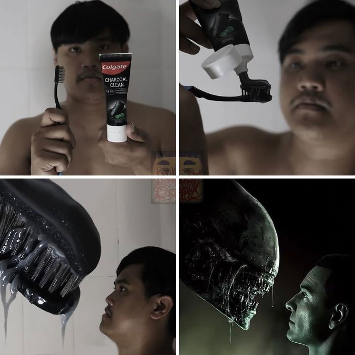 Alien using just a toothbrush, the cheap Cosplay guy has garnered over 4.5m