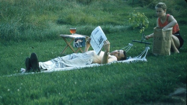 9. “This is a photo of a slide of my great aunt and her dad in the 1950s. He couldn’t wait for his tree to grow before using his hammock.”