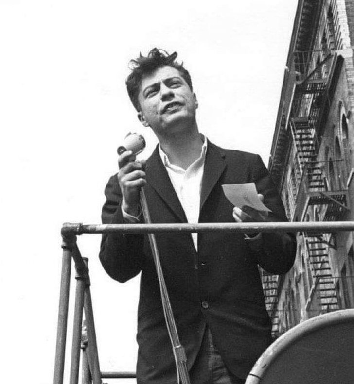 7. “My dad in 1969 in the Bronx, NY, speaking out against the Vietnam War. He became an anthropologist and archeologist, was taken hostage on 2 separate digs, saw a man trampled by water buffalo, crawled into a leopard den for ancient pottery, and so much more. He was my very own Indiana Jones.”