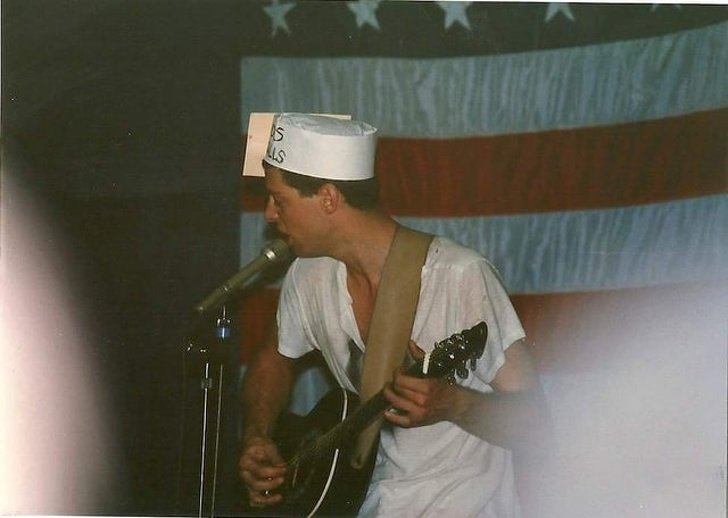 14. “Me, 1988 USS Midway, on a talent show crossing the equator of the Indian Ocean. Singing a song about a girl with the clap. I won the contest.”