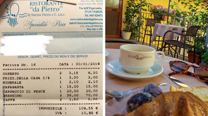 - The price of a coffee at a table in Italy is distinctively different at the bar.