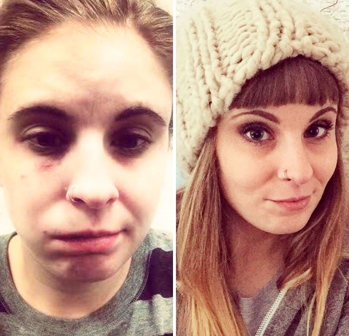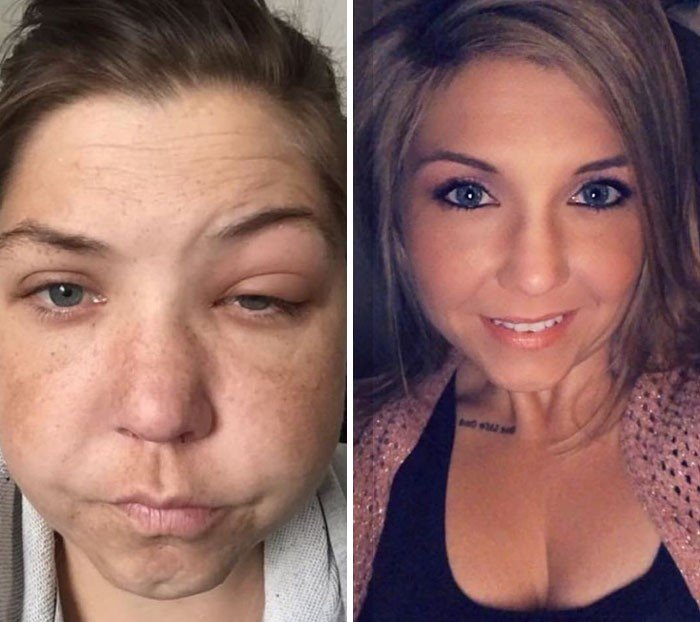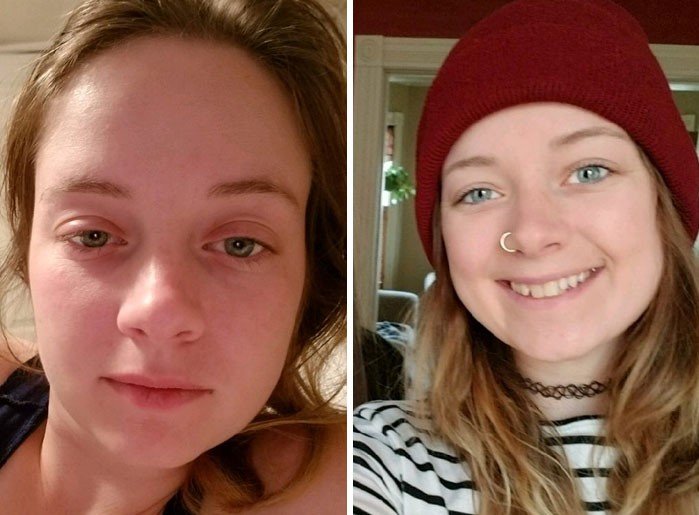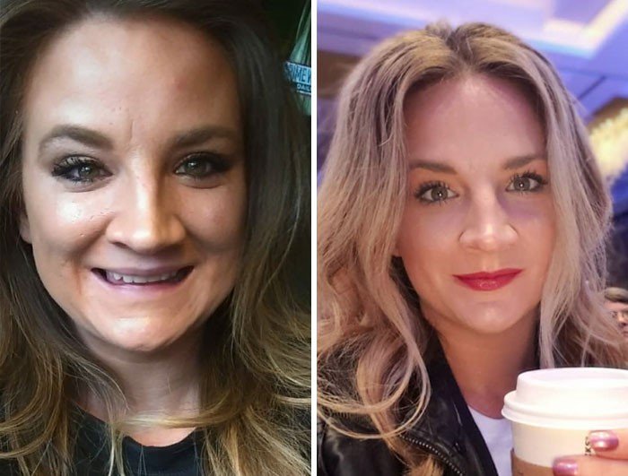#29 On The Left: 1-4 Bottles Of Wine A Week... Dayum, There's A Lot Of Full Coverage Foundation On That Mug. Eeeek. On The Right, 9 Months Later: Lots Of Infused Water, Bb Cream & Some Contour/Blush. The Difference: Sobriety