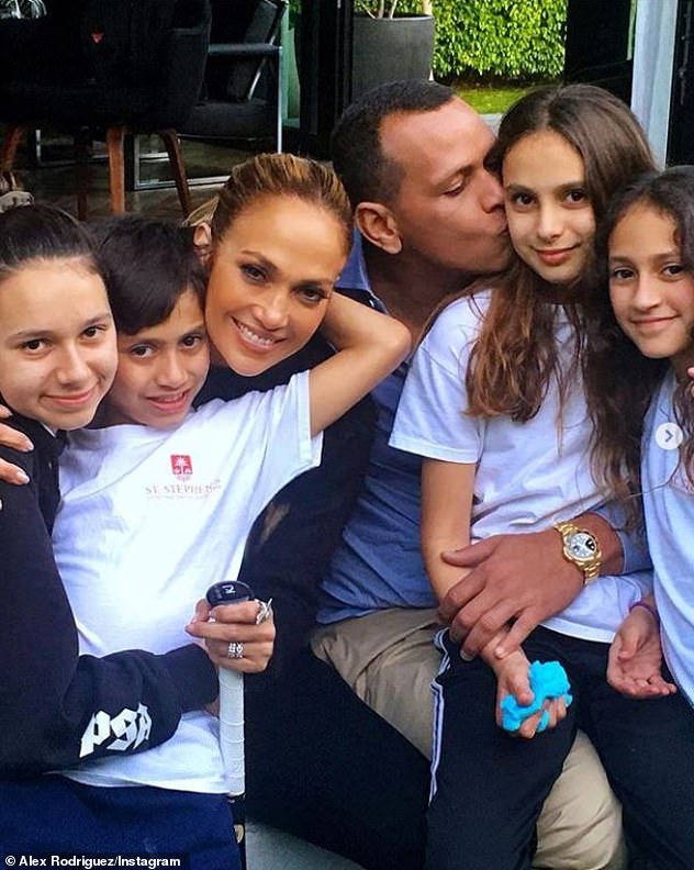 She didn't forget to also showcase her emerald-cut diamond engagement ring made of what was estimated to be 10-15 carat diamond rings and worth up to $5 million from fiancé Alex Rodriguez.