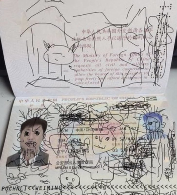 10. A child expressed himself creatively on his dad’s passport and now he is stuck in South Korea.
