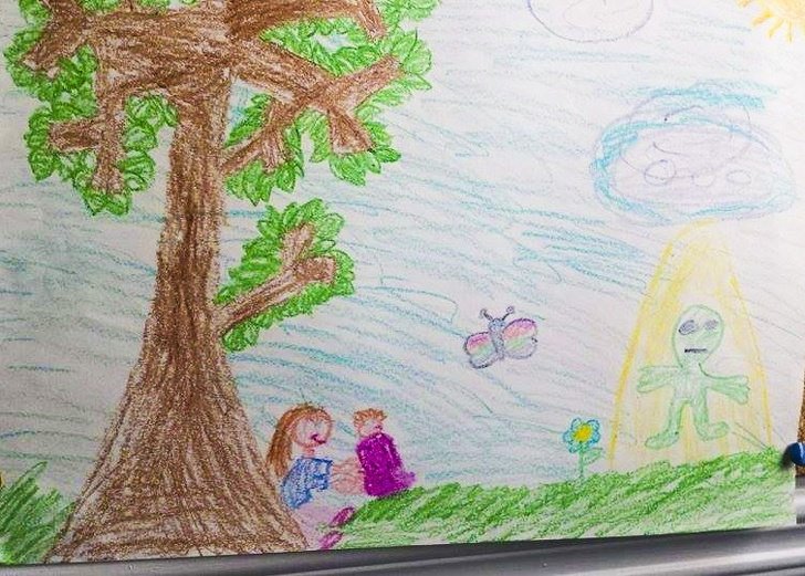 18. “I found this drawing my sister drew of her sacrificing me to the aliens.”