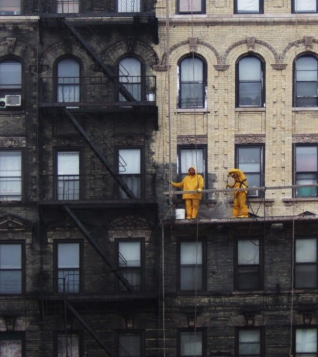 #16 This building in New York in the middle of getting its grime washed from the coal industry.