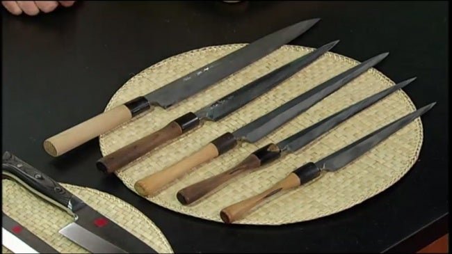 #6 Knives from Chef Masaharu Morimoto. he one on the left is new and the rest were the knives he’s been using regularly for 3 years.