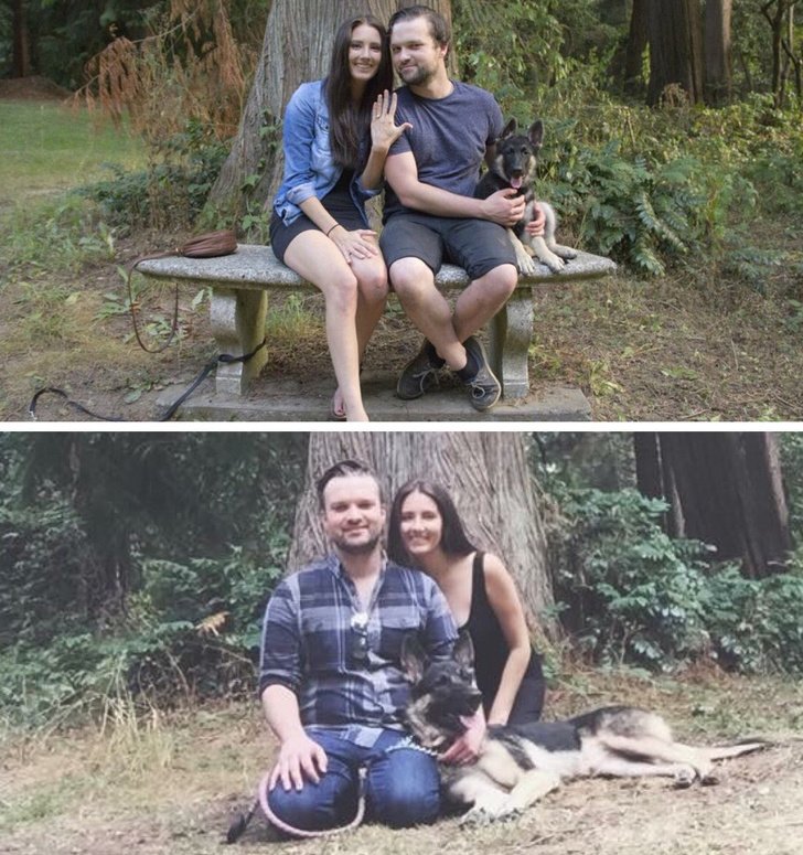 13. “I’m the guy who proposed with the ring around a puppy’s collar a couple years ago. Some of you asked for an updated picture, here we are on our anniversary yesterday.”