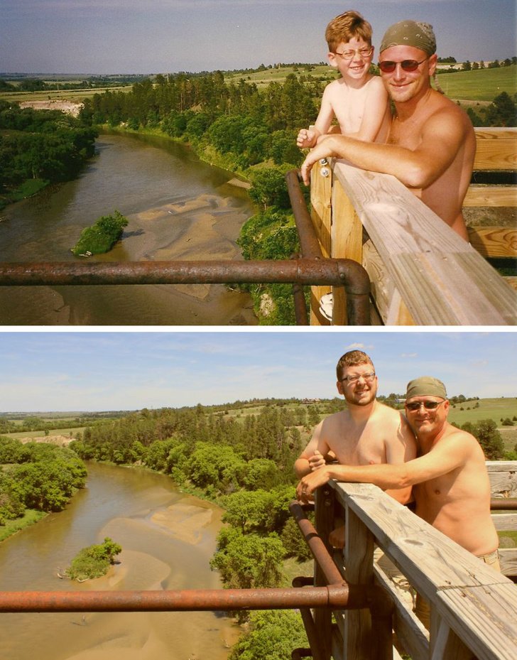 18. “My dad and I had the chance to take a trip we had taken once, 15 years ago. Decided to recreate this photo as a tribute.”
