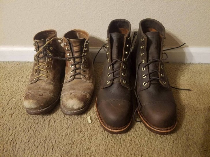 4. “My Dad’s 30 year old boots, next to my brand new pair.”