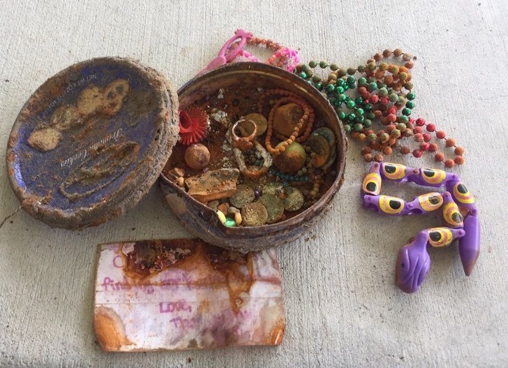 6. “So I was in my backyard playing catch with the dogs and came across something popping out of the ground. I dug it up and realized it was a time capsule I made when I was about 7 or 8. I decided to open it up and found this little guy inside! He’s been in his time capsule, in the ground for over 25 years. Welcome to 2018 buddy!”