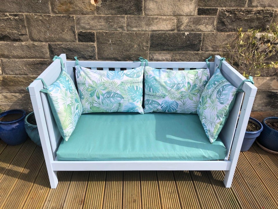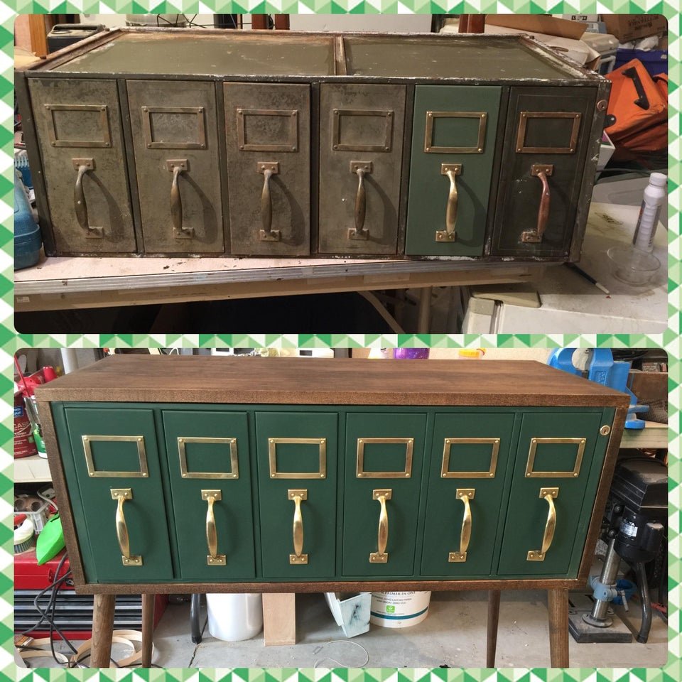 From trash heap with thorough cleaning, new paint and wood wrap. Added legs and bingo!