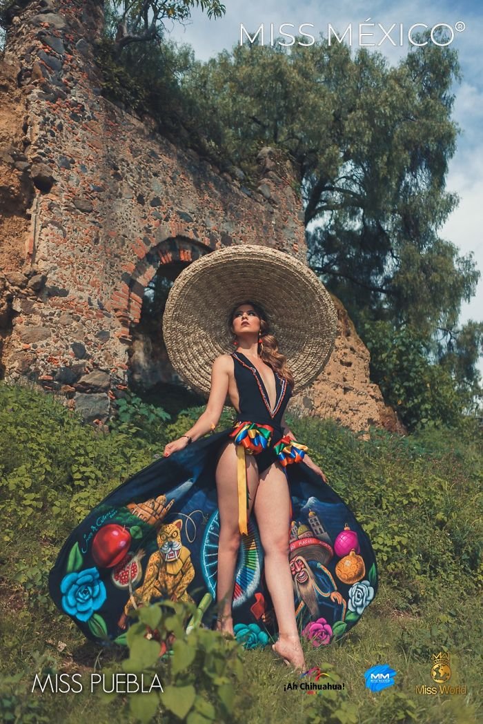 Also featuring native and European elements, the costumes were designed with fibers of choice, including agave, bark, wool, silk, and bark. Specifically, traditional Mexican clothing is usually tall with a wide-brimmed hat, and these photos are proof. Moving onto the next round, internet users selected six beautiful divas having overreacted to their pictures on social media pages, while foreign judges who had the opportunity to learn about the country's region equally selected gorgeously looking contestants.