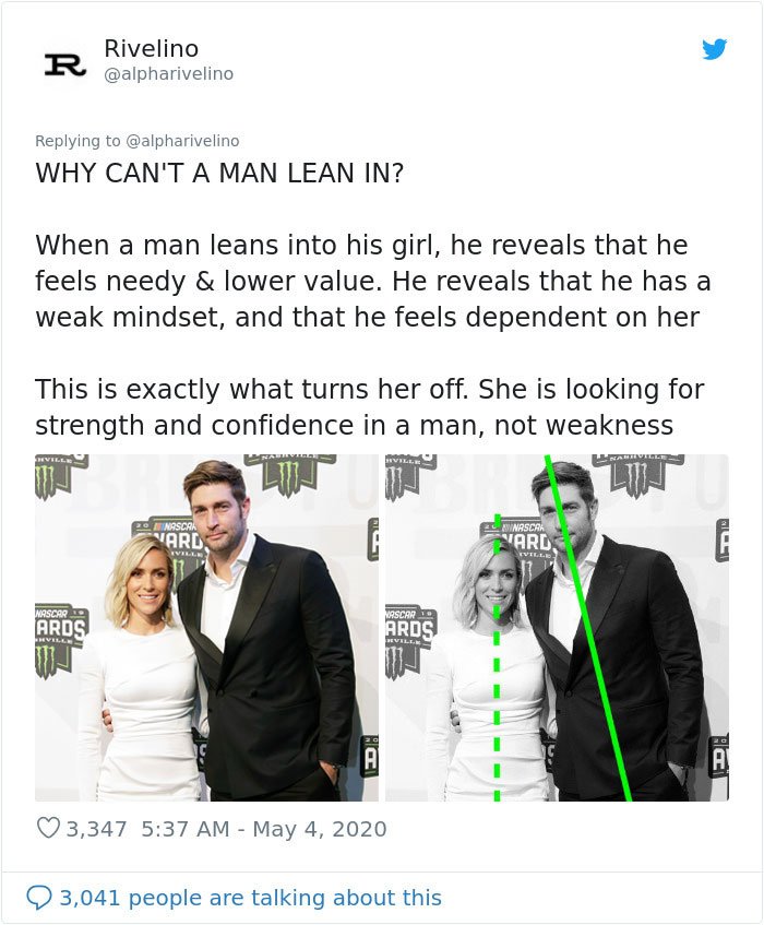 “Don’t LEAN IN Is One Of The First Things We Should Teach Beginners. Don’t Lean In Physically, Emotionally, Socially. The Mind And Body Are Intimately Connected, And The Last Thing She Wants Is A Needy Approval Seeks Leaning Into Her World. Don’t Lean Into Her. Pull Her Into You,” Read One Of Rivelino Descriptions.