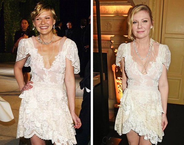 Dunst arrived at the Vanity Fair Party for The Oscars in 2004 wearing this tiny lace gown. Thirteen years later, the actress again donned the outfit to the presentation of a new collection by The Garden of Kalahari in Paris.Kim Kardashian.