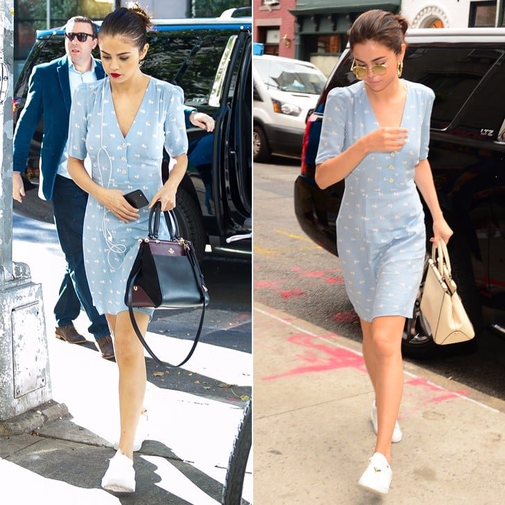 The Duchess of Cambridge loved her white royal blue flower petals print so much that she has worn it more than once. Thanks to the perfectly selected accessories and hairdo, Kate managed to make her appearance look unique and keep her elegant royal style.Selena Gomez.