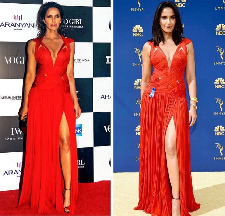 What do celebs do with their cloth after wearing them once? If you so much appreciate a dress, do ensure to wear it again just as the celebs in our compilation did. From Kim Kardashian, Naomi Campbell to Padma Lakshmi, we’ve gathered stunning photos of celebrities rocking the same outfit twice despite being entitled to having as many designers daily wear accessories, bags, and footwear from different brands. Without any further ado, do have a look!