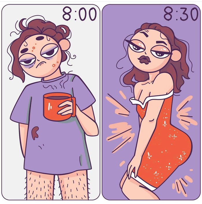 To be candid, being a woman is no easy feat! Everyday problems remain inevitable in women's lives, yet they keep their chins and never let it bog them down. Bad hair days, mood swings, acne, periods, bodily issues, and even relationships, among others, are just some problems every girl has to face. And illustrating them, comic artist Bloome has launched a series of illustrations that show Hanna's struggles (born in the internet era). The strips are hilarious, yet they nail the point right on the head.