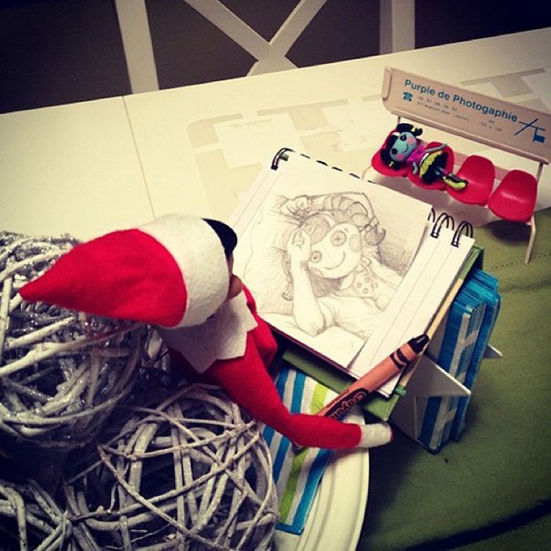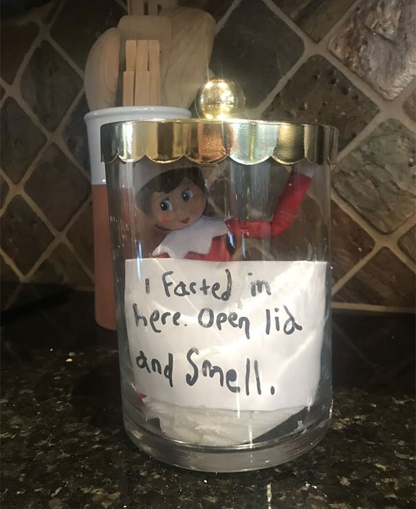 Let's turn to the following pictures because you will surely be dumbfounded by some. These are some weird, scary and funny elf on the shelf poses that will really steal the attention of your guests when they come over. Some are made to prevent kids from chomping down on all your cookies! They were meant to be elves that keep tabs on your kids and make sure they are behaving well.