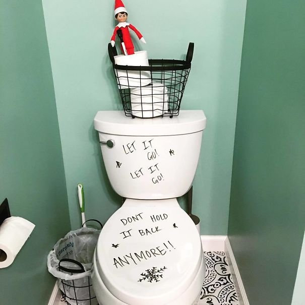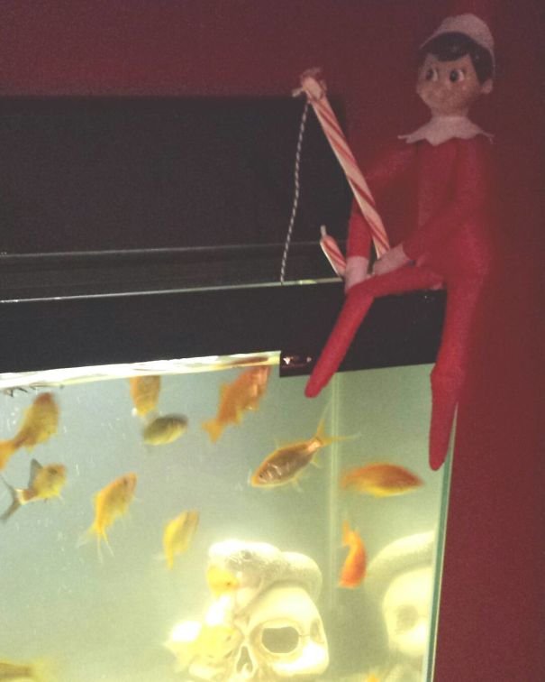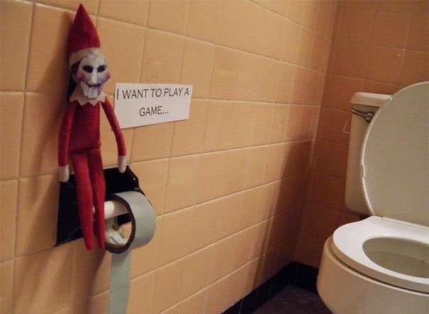 There are also some that can be pretty, well, spooky for the fainthearted. Not everybody appreciates the presence of Chucky during a peaceful and joyful holiday like Christmas. Others just left it to the men to take care of the elf on the shelf and as we've all known, men can be very... different in their creative approach on these matters. Adults have taken serious approaches to make sure their kids behave well.