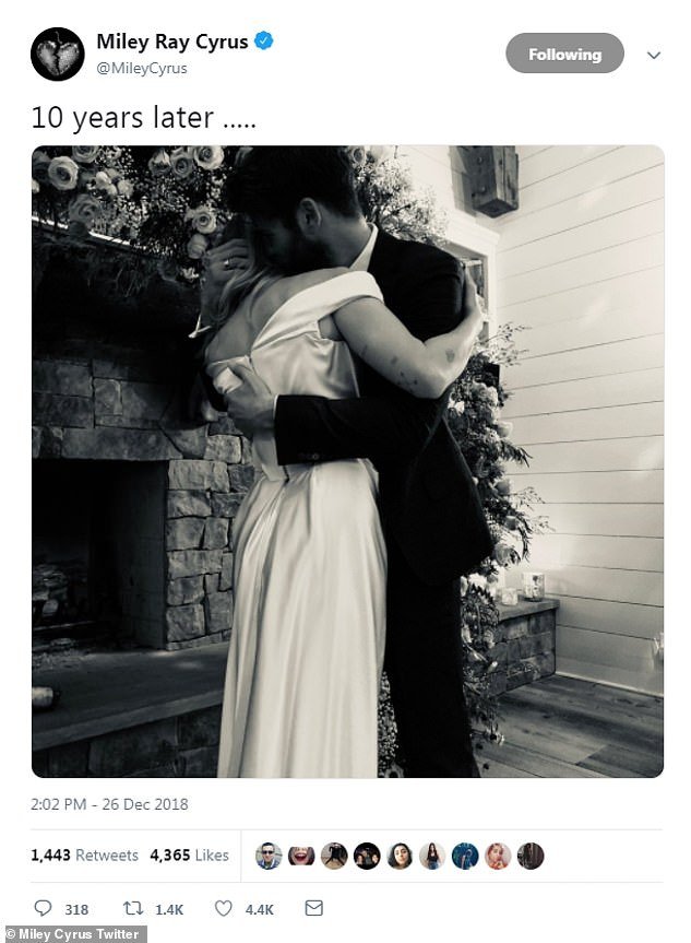 Her words: In a tweet, the star said that they wed '10 years later'; they have been together for a decade, on and off