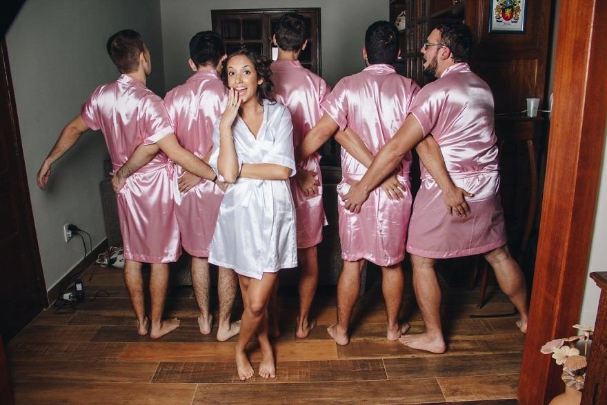 What makes a bridal shoot memorable is the company, and if you didn’t have any girlfriends, your bros could just do the trick. That’s what 24-year- old Rebecca from Brazil did and it turned out just perfect.
